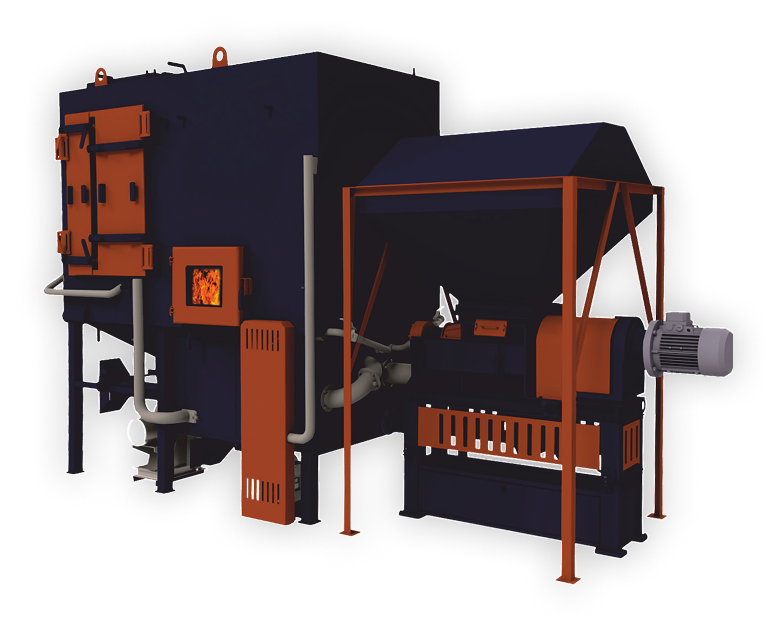 Топочное устройство позволяет в автоматическом режиме осуществлять: дробление и равномерную подачу топлива в топку котла; сжигание и постоянную шуровку топлива.